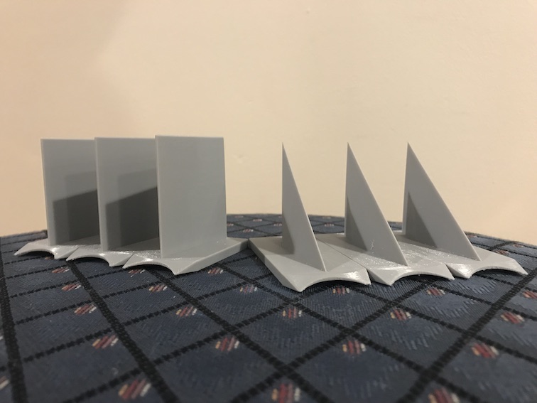 The Lower and upper fins have been printed. The lower fins weigh about 10 grams each and the upper fins 13 grams. These fins are not scale, they are upsized for stability to match the Estes kit.